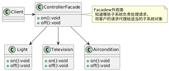 note right: Facadew外观类\n 知道哪些子系统负责处理请求,\n 将客户的请求代理给适当的子系统对象
