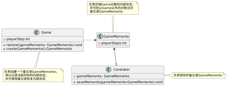 | 备忘录 | 增加一个类用于存储状态,一个类负责备份和恢复状态 |