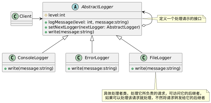 | 职责链 | 类似于Asp.net管道,一条链操作,每个类都有处理的机会 没权限就往上级抛,直到有权限的类能够处理 |