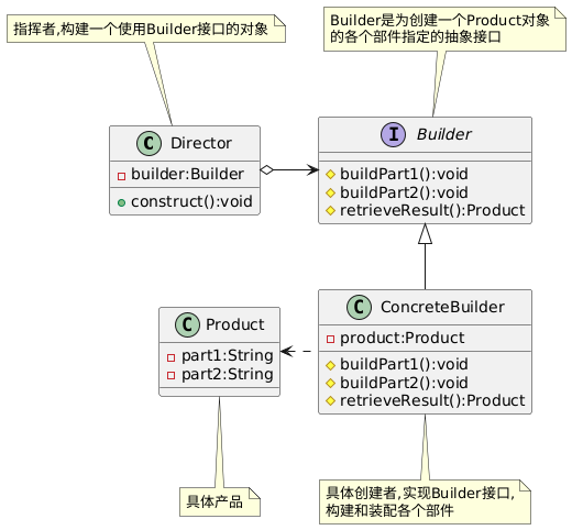 | 建造者 | 将一个复制对象的构建与它的表示分离,使得同样的构建过程可以创建不同的表示。 |
